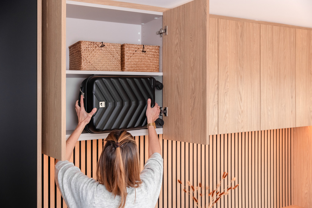 On oublie souvent les placards situés en hauteur… jusqu’à ce qu’ils deviennent un fourre-tout inaccessible. Pour éviter cela, Marie Steen, notre Home Organizer, conseille de leur attribuer une fonction bien précise. Gardez-y les affaires peu utilisées comme des sacs de voyage ou des vêtements saisonniers. Rangez-les dans des boîtes étiquetées : simple et malin pour garder de l’ordre durablement.