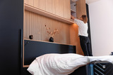 “Réservez vos placards en hauteur aux affaires que vous utilisez rarement comme les vêtements hors-saison ou des sacs de voyage.”