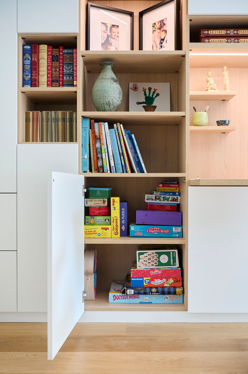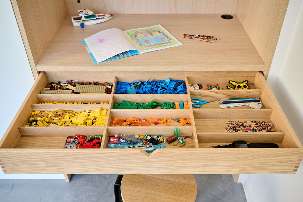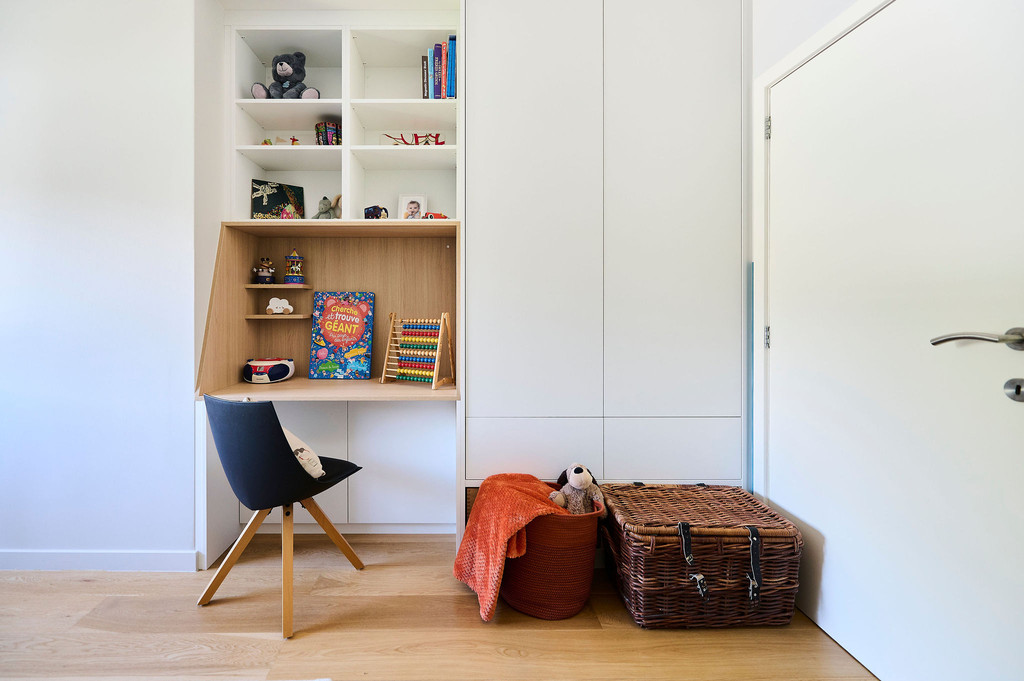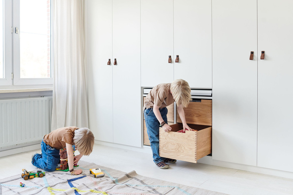 La clé d’un intérieur durablement rangée ? La qualité et la modularité. Une solution de rangement qui évolue avec votre famille vous fait gagner de la place, du temps et de l’énergie. Aujourd’hui, vous y rangez des DUPLO, dans quelques années, ce seront des livres ou des loisirs créatifs. En réfléchissant avec un architecte d’intérieur à l’agencement, aux matériaux et à la durabilité, vous créez une solution vraiment adaptée à votre quotidien.