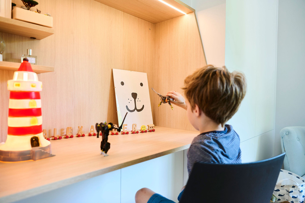 Avec une agencement adapté, la chambre d’enfant paraît plus grande, plus calme et invite naturellement au jeu… comme au rangement.