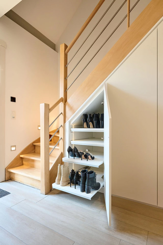 Witte maatkast onder de trap in de inkomhal
