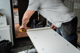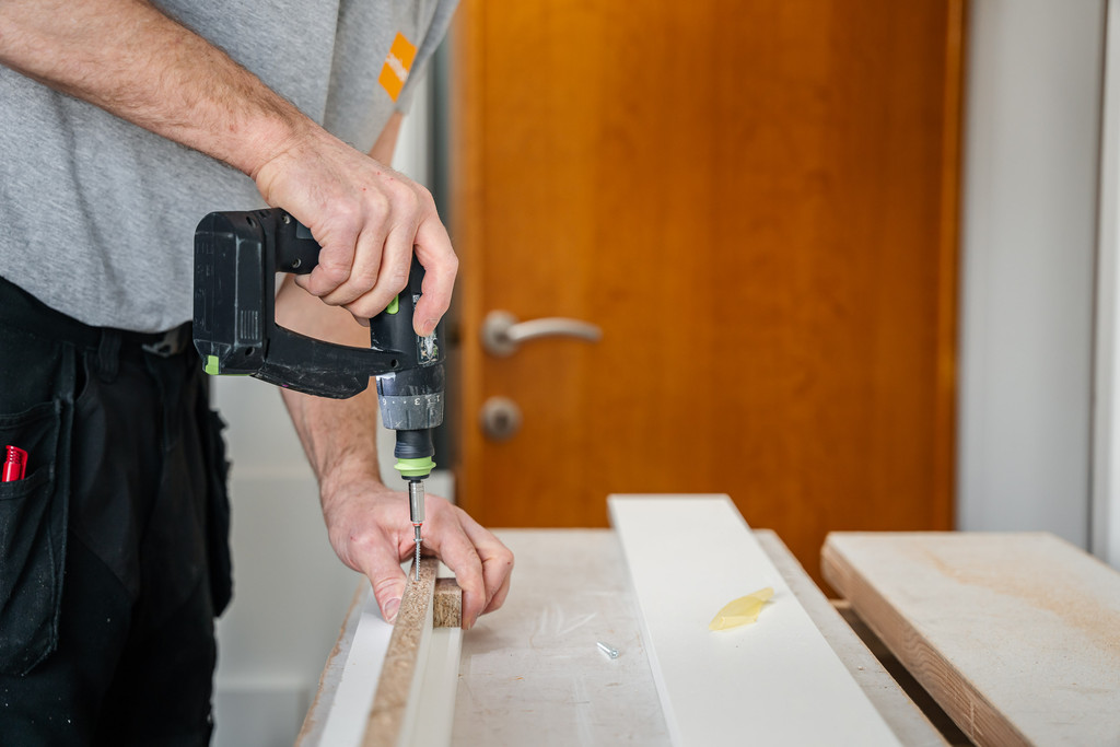 Nadat Erik het ontwerp had uitgetekend en de finale opmetingen was gaan nemen in de nieuwe woning van Mevin en Pieter was het de beurt aan onze andere Camber-experts. Leveraars Dimitri en Steven brachten de panelen en accessoires tot in Hasselt en zorgden ervoor dat alles klaar stond voor meubelplaatsers Kevin, Olivier en Wout. Zij hadden heel wat werk voor de boeg om de kast langs beide zijden naadloos te laten aansluiten op de muren. Een uitdaging maar wel eentje die ze tot een succesvol einde hebben gebracht dankzij hun knowhow en vaardigheden.